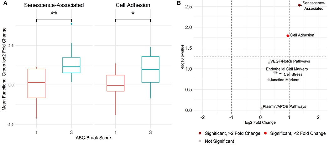 Since neuronal loss is more statistically associated with tau tangles than with amyloid plaques and tau pathology alone can lead to morphological and functional alterations to the cerebral vasculature, we set our sights on the intersection between tau tangles and vascular dysfunction in the AD brain. We previously showed that biomarkers of cellular senescence and adhesion are transcriptomically upregulated in microvessels (e.g., capillaries) isolated from the dorsolateral prefrontal cortex of human donor brains with high tau tangle burdens:
