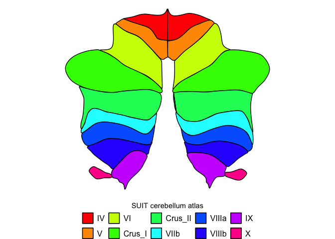 fill_title = "SUIT cerebellum atlas", cmap=rainbow)