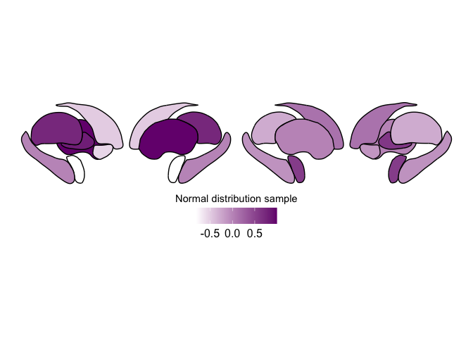 hemisphere='R', fill_title = "Normal distribution sample, aseg atlas",